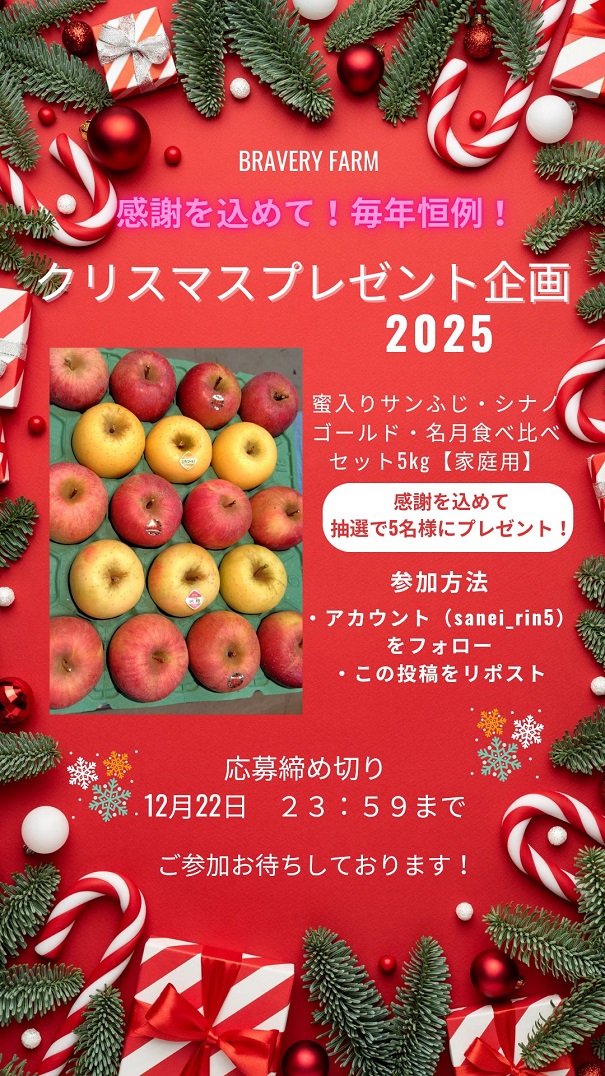 賞品:蜜入りサンふじ・シナノゴールド・名月食べ比べ家庭用セット5kg(5名様)