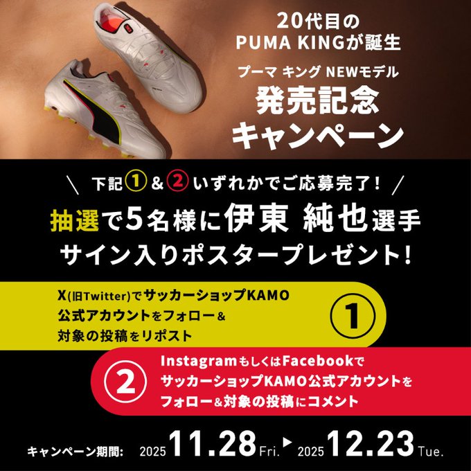 サッカーショップKAMO‐プーマ「KING 20」発売記念スペシャルキャンペーン