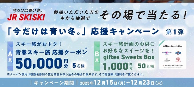 青春スキー旅 応援クーポン50,000円分(5名様)