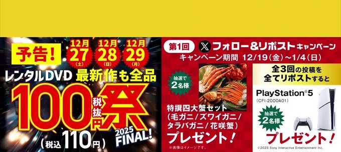 ゲオ‐レンタルDVD100円祭&初売り開催記念