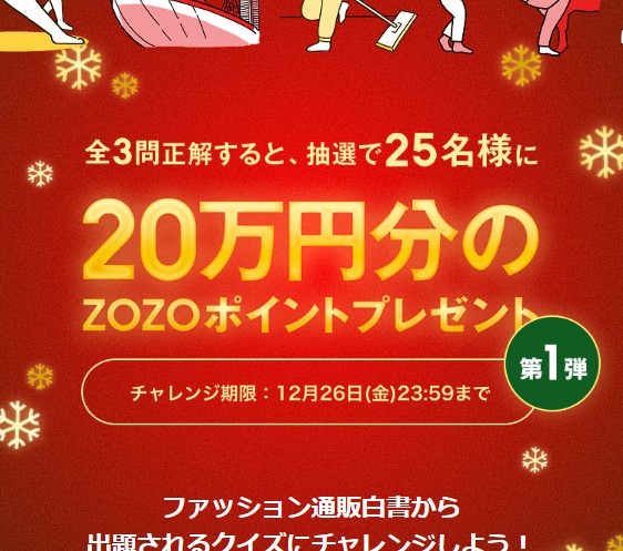 賞品:ZOZOTOWNでご利用いただける200,000円分のポイント(25名様)