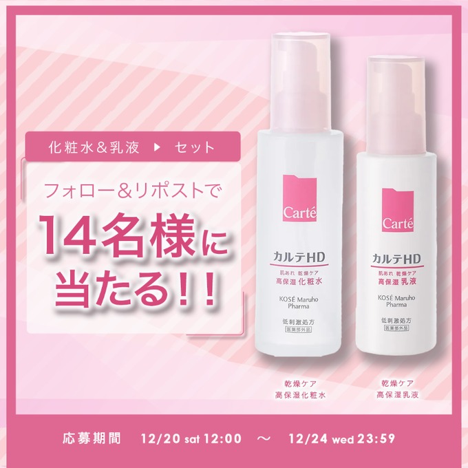 賞品:カルテHDの化粧水&乳液セット(14名様)