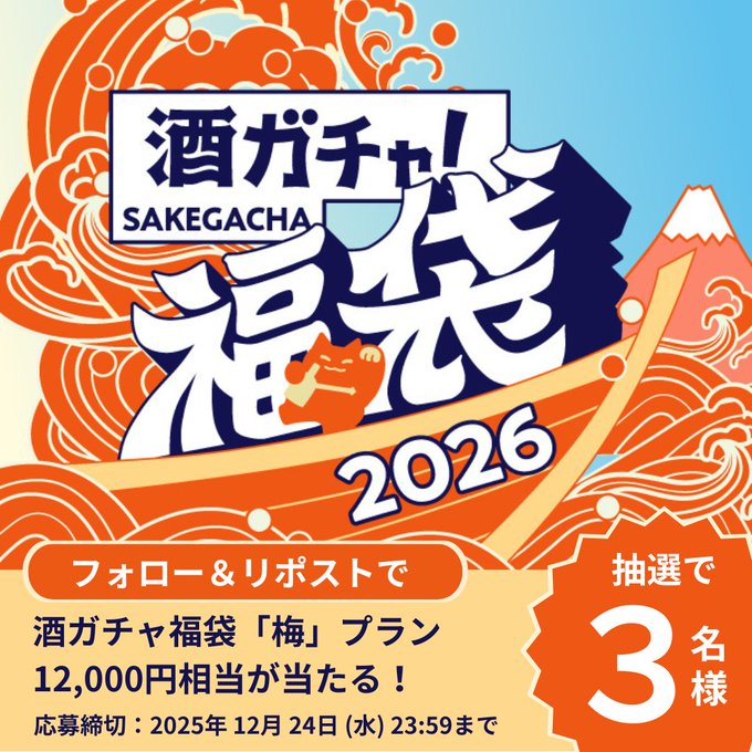 【X懸賞】酒ガチャ福袋を3名様にプレゼント 2025.12.22「クランド」クラフト酒のお店‐フォロー&リポストキャンペーン 賞品:酒ガチャ福袋(3名様) 締切:2025年12月24日(水)公式X(Twitter)アカウントをフォロー&キャンペーン対象ポストをリポストしてご応募ください。※詳細はキャンペーンページにてご確認ください。応募はこちらから