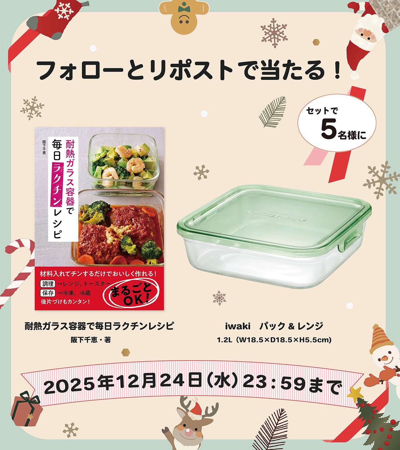 賞品:iwakiのベストセラー商品「パック&レンジ」とレシピ本(5名様)