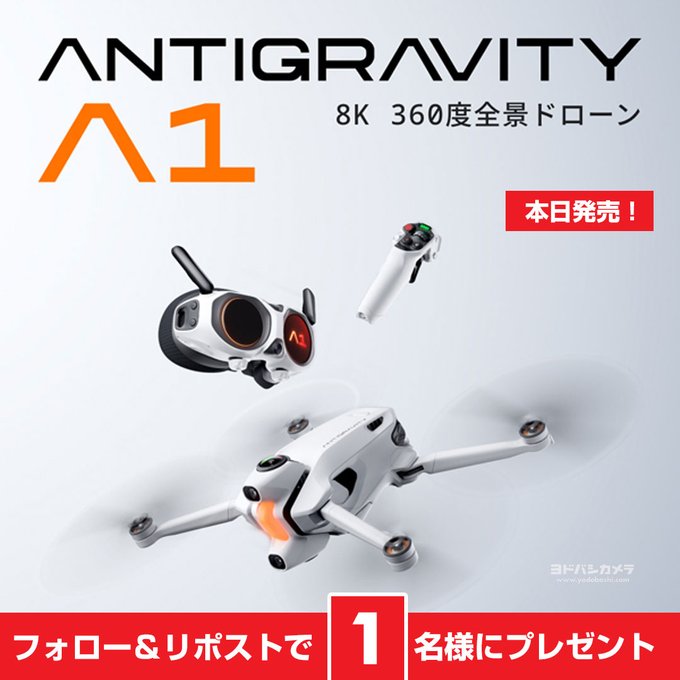 【X懸賞】Antigravity A1 インフィニティキットを1名様にプレゼント 2025.12.22ヨドバシ@映像機材専門‐プレゼントキャンペーン 賞品:Antigravity A1 インフィニティキット(1名様) 締切:2025年12月24日(水)👉ドローンを飛ばしたことある❓👉フォロー&リポスト※詳細はキャンペーンページにてご確認ください。応募はこちらから