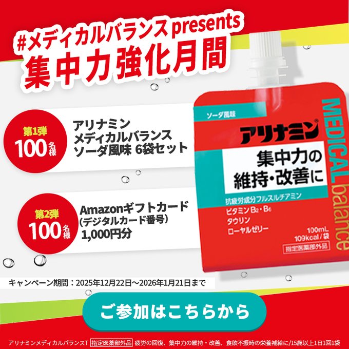 アリナミン‐#メディカルバランスpresents集中力強化月間キャンペーン