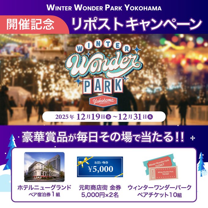Winter Wonder Park Yokohama 2025-26公式X(Twitter)アカウントをフォロー&キャンペーン対象ポストをリポストしてご応募ください。