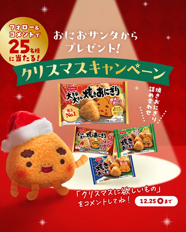 フォロー&コメントをしていただいた方の中から、抽選で「ニッスイ焼きおにぎり詰め合わせ」を25名様にプレゼント