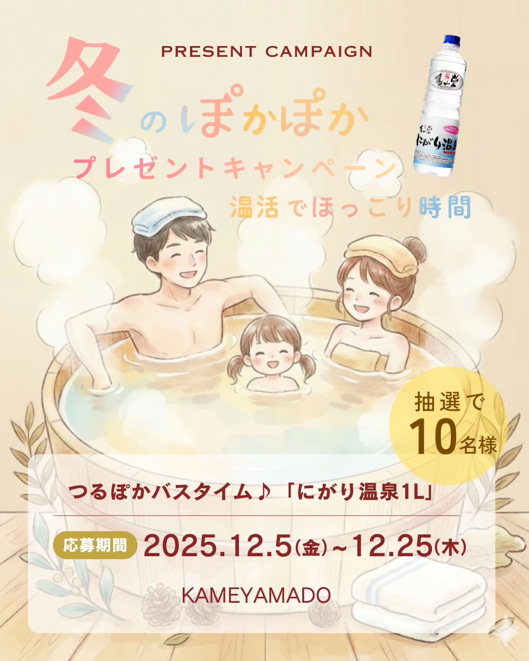 賞品:亀山堂「にがり温泉1L」(10名様)