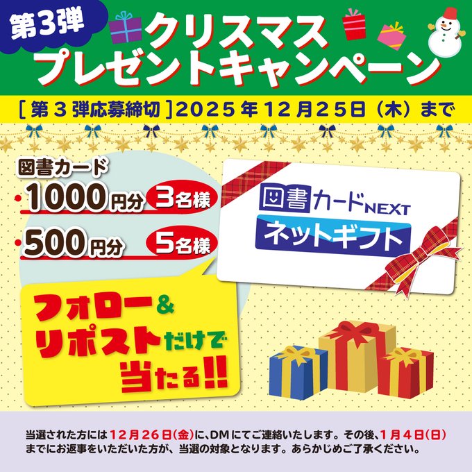 賞品:図書カードネットギフト最大1,000円分(8名様)