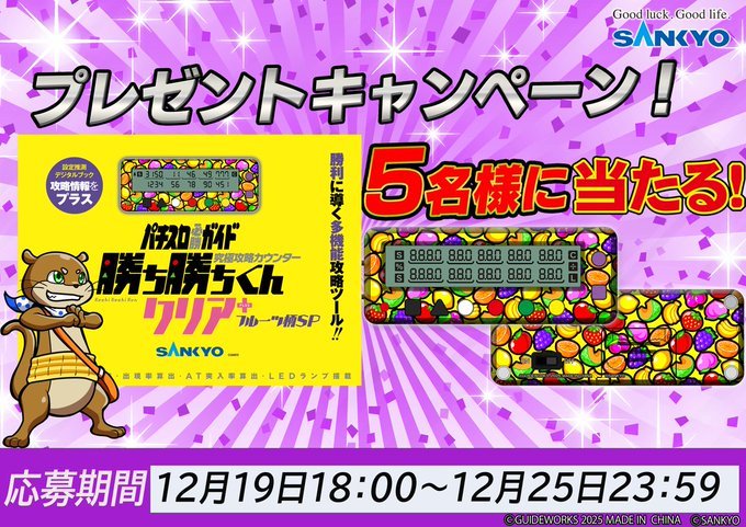 賞品:勝ち勝ちくんクリアPLUS フルーツ柄SP(5名様)