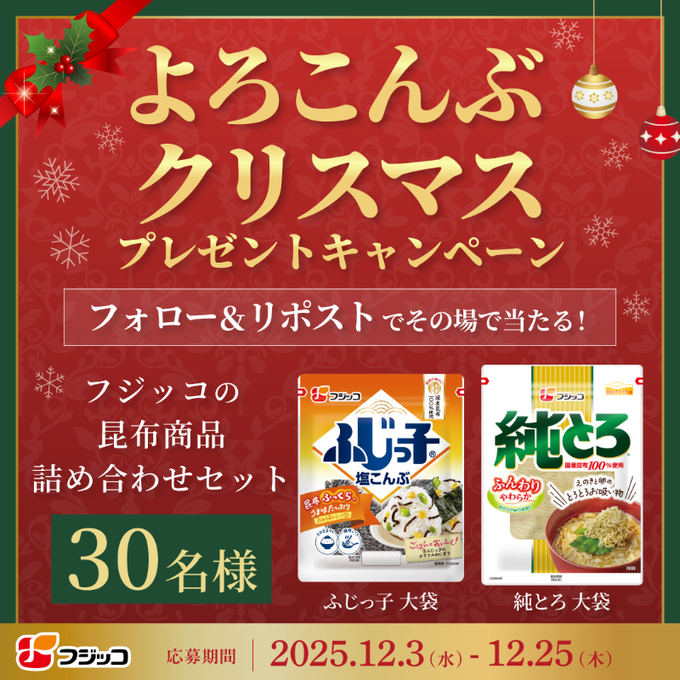 賞品:「ふじっ子(塩こんぶ) 大袋」「純とろ 大袋」(30名様)