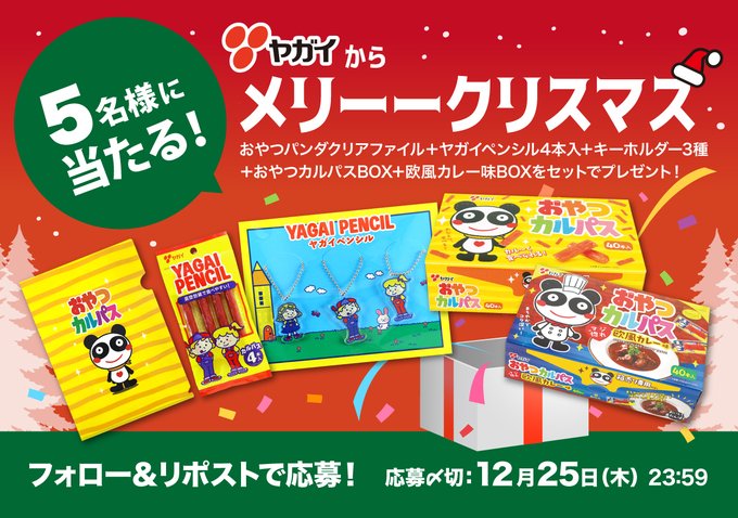 【X懸賞】おやつカルパス BOXを含むヤガイ商品と非売品クリアファイル+ヤガイペンシルキーホルダーを5名様にプレゼント
