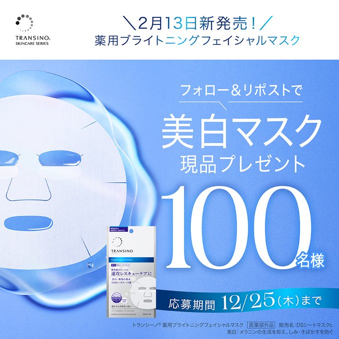 賞品:トランシーノ薬用ブライトニングフェイシャルマスク(100名様)