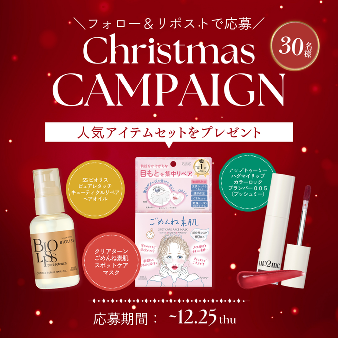賞品:クリスマスにぴったりな人気アイテムセット(30名様)