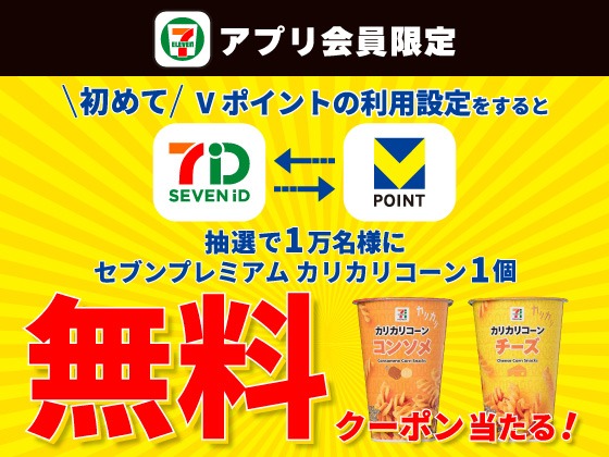 初めてVポイントの利用設定をすると、抽選で1万名にカリカリコーン無料クーポンが当たる!