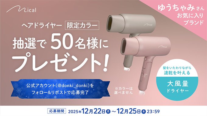 驚安の殿堂 ドン・キホーテ‐ゆうちゃみさんお気に入りの『mical(ミカル)ヘアケア家電シリーズ』から限定カラー発売記念キャンペーン