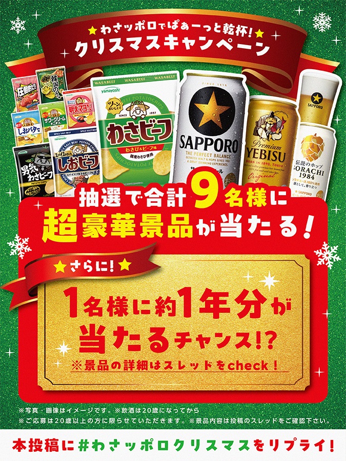 わさビーフ×サッポロビール わさッポロでぱぁーっと乾杯 クリスマスキャンペーン
