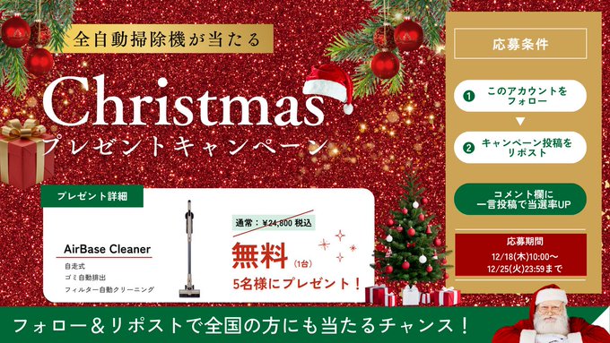 株式会社アズマ‐楽天OPEN記念!エアベースクリーナーが当たるクリスマスキャンペーン