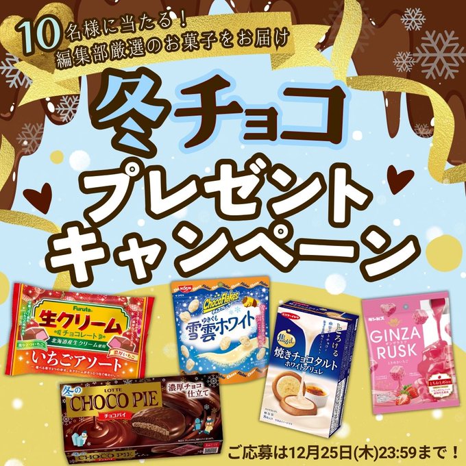 賞品:冬に食べたい!チョコレートのお菓子5種セット(10名様)
