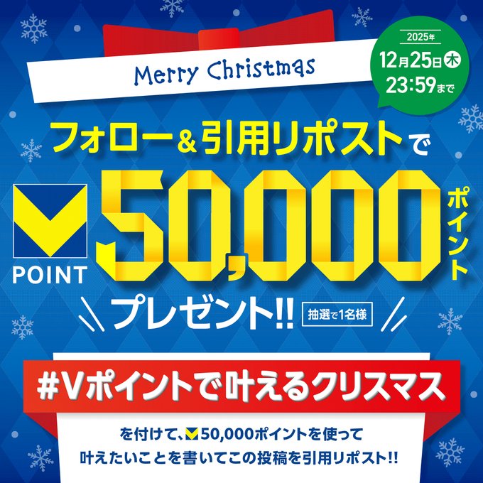 ② #Vポイントで叶えるクリスマス と、あなたが5万ポイントを使って叶えたいことを書いてこの投稿を引用リポスト!