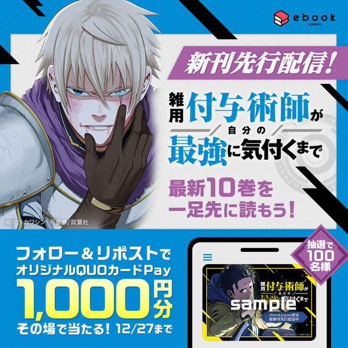 まんがお得に買うならebookjapan公式X(Twitter)アカウントをフォロー&キャンペーン対象ポストをリポストして、記載されているURLからご応募ください。