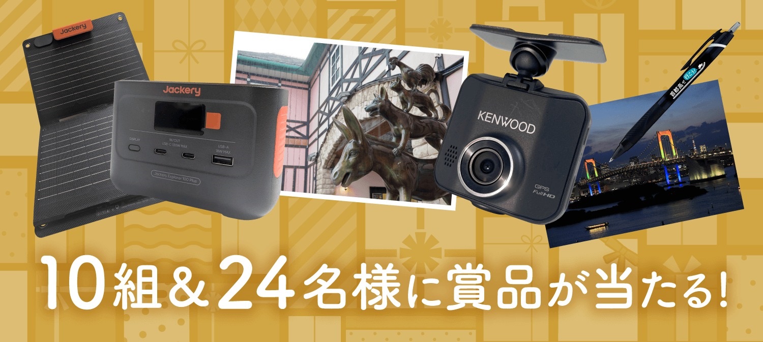 東京ドイツ村入場券、ドライブレコーダー、ポータブル電源・ミニソーラーパネル、首都高オリジナルグッズを合計34名様にプレゼント