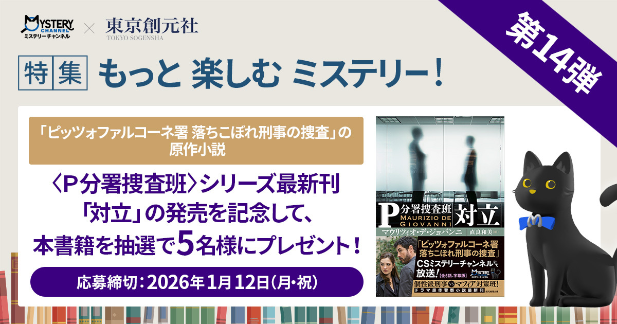 P分署捜査班シリーズ「対立」を5名様にプレゼント 2025.12.26ミステリーチャンネル‐P分署捜査班シリーズ 最新刊「対立」発売記念プレゼントキャンペーン 賞品:P分署捜査班シリーズ「対立」(5名様) 締切:2026年1月12日(月)アンケートに答えてご応募ください。※詳細はキャンペーンページにてご確認ください。応募はこちらから
