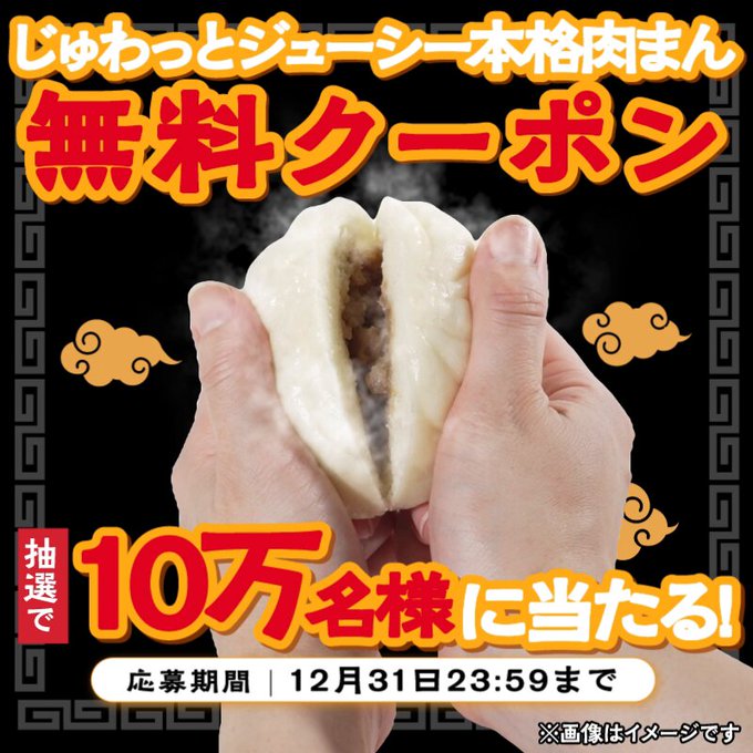 賞品:じゅわっとジューシー本格肉まんの無料クーポン(10万名様)