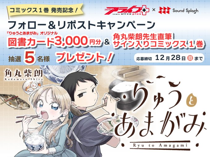 賞品:『りゅうとあまがみ』オリジナル図書カード3,000円分とサイン入りコミックス1巻(5名様)