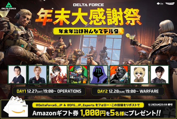 @DeltaForceG_JP @DFG_JP_Esports をフォロー&キャンペーン対象ポストをリポストしてご応募ください。