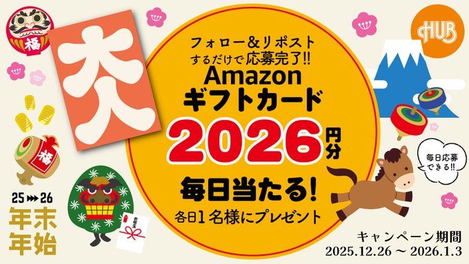 賞品:Amazonギフトカード2,026円分(毎日1名様)