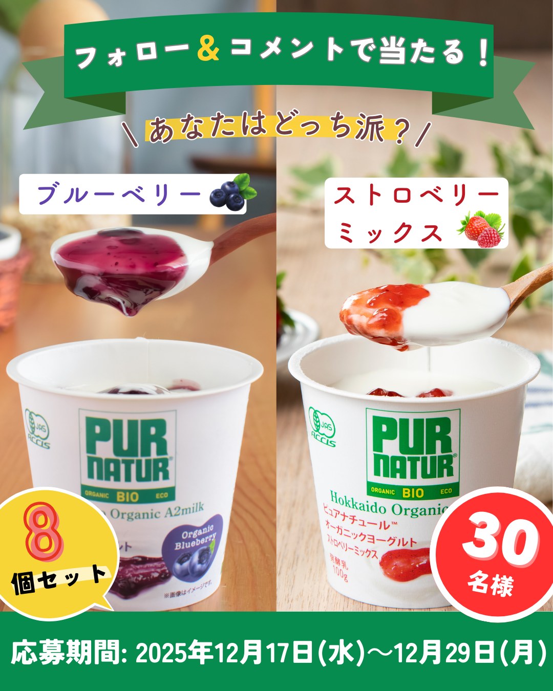 賞品:ピュアナチュールオーガニックヨーグルト8個セット(30名様)