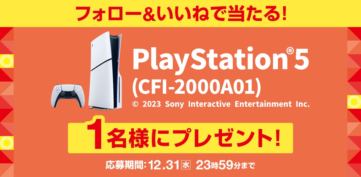賞品:PlayStation®5 (CFI-2000A01)(1名様)