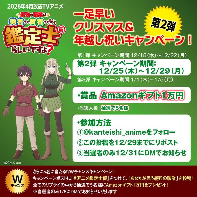 TVアニメ『最強の職業は勇者でも賢者でもなく鑑定士(仮)らしいですよ?』‐フォロー&リポストキャンペーン