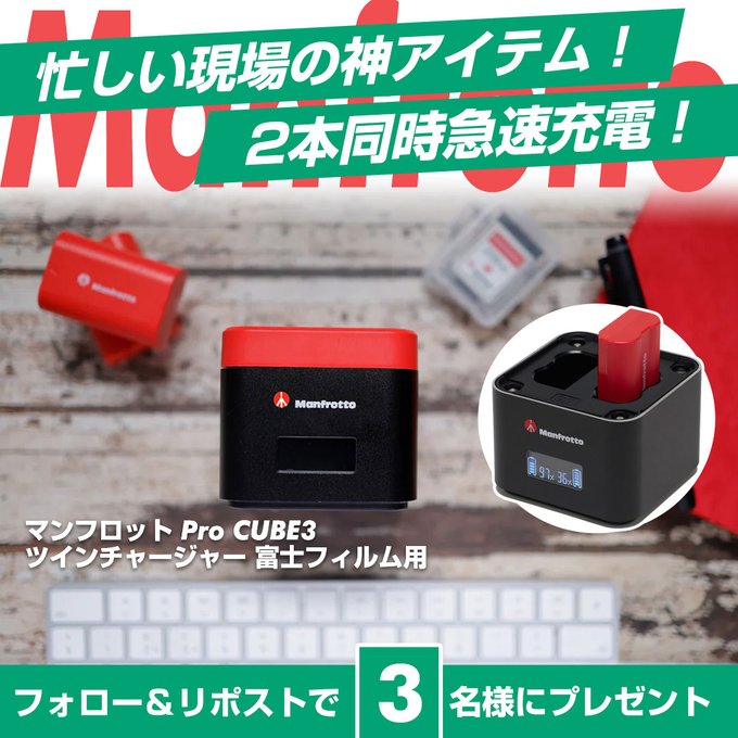 賞品:マンフロット Pro CUBE3 ツインチャージャー 富士フィルム用(3名様)