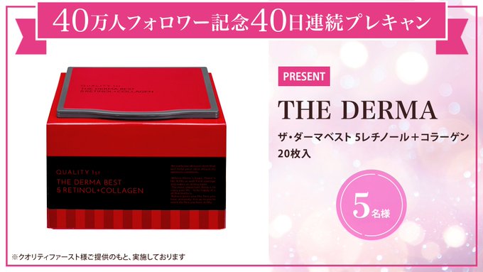 賞品:THE DERMA ザ・ダーマベスト 5レチノール+コラーゲン 20枚入(5名様)