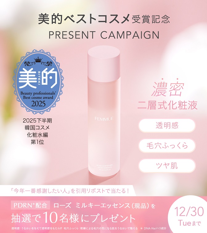 FEMMUE‐美的ベストコスメ受賞記念 ローズ ミルキーエッセンスプレゼントキャンペーン