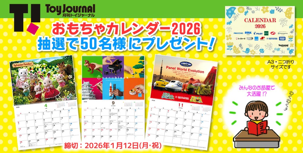 おもちゃカレンダー2026を50名様にプレゼント 2025.12.28おもちゃ情報net.‐プレゼントキャンペーン 賞品:おもちゃカレンダー2026(50名様) 締切:2026年1月12日(月)応募フォームより必要事項を入力してご応募ください。※詳細はキャンペーンページにてご確認ください。応募はこちらから