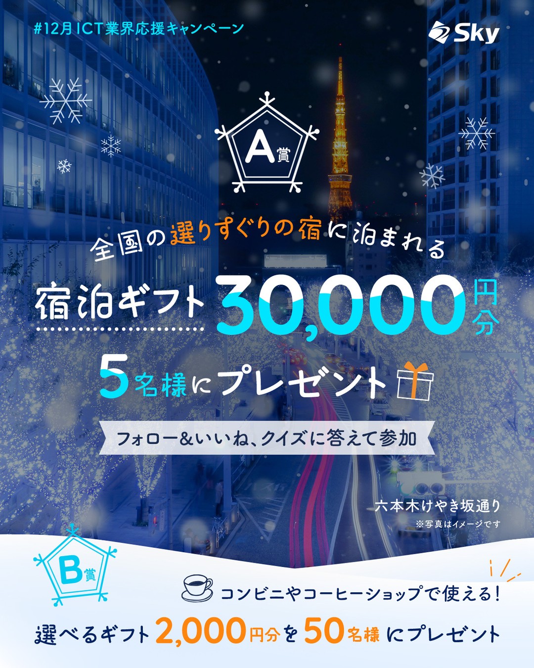 A賞:全国から選べる宿泊ギフト3万円分を5名様