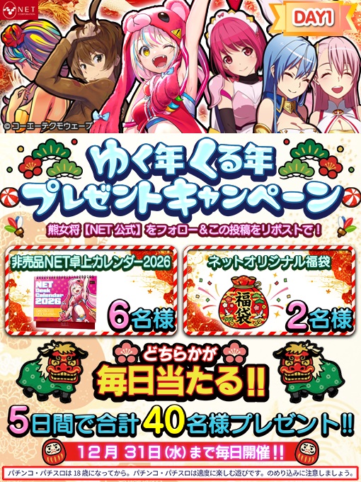 賞品:NETオリジナル福袋、非売品NET卓上カレンダー2026(合計40名様)