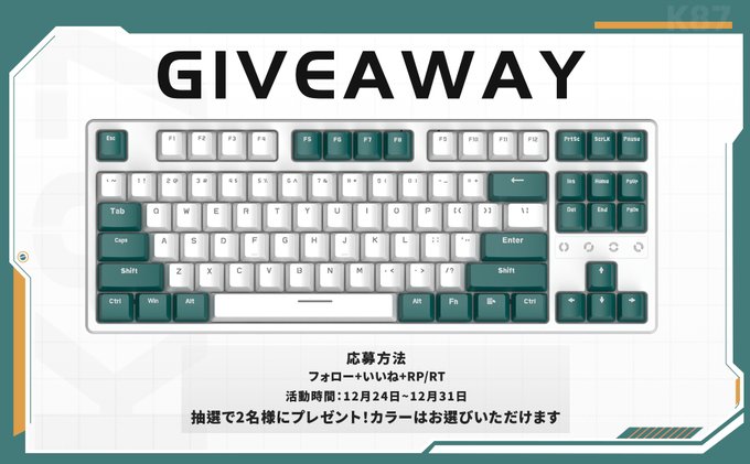 【X懸賞】K87 ゲーミングキーボードを2名様にプレゼント 2025.12.28MAMBASNAKE JP‐プレゼントキャンペーン 賞品:K87 ゲーミングキーボード(2名様) 締切:2025年12月31日(水)応募方法:フォロー+いいね+RP/RT※詳細はキャンペーンページにてご確認ください。応募はこちらから