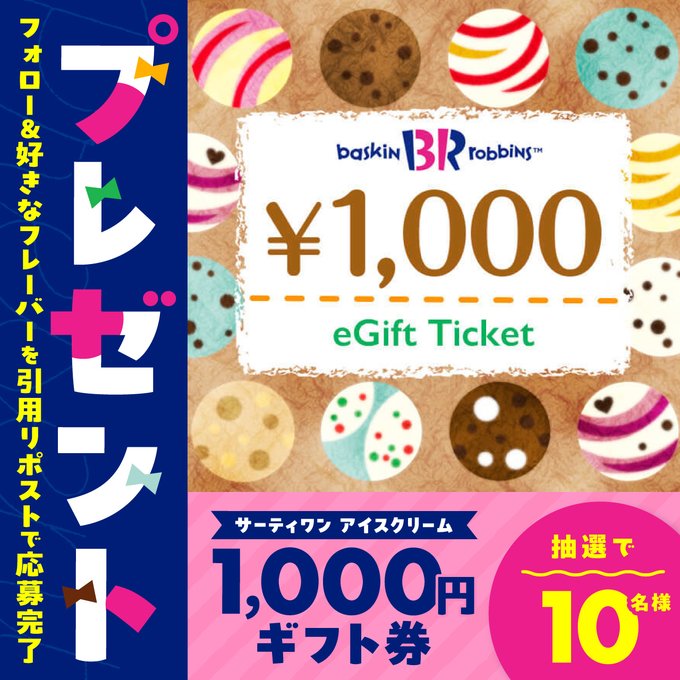 賞品:サーティワン アイスクリーム 1,000円ギフト券(10名様)