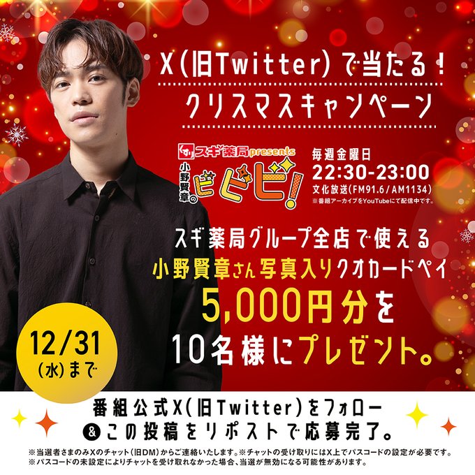 スギ薬局presents 小野賢章のビビビ!‐フォロー&リポストキャンペーン