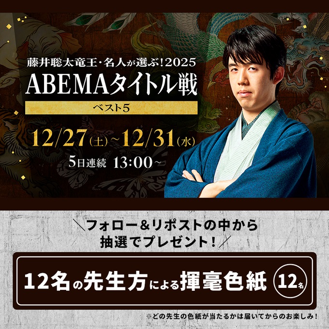 @ABEMA @Shogi_ABEMA をフォロー&キャンペーン対象ポストをリポストしてご応募ください。