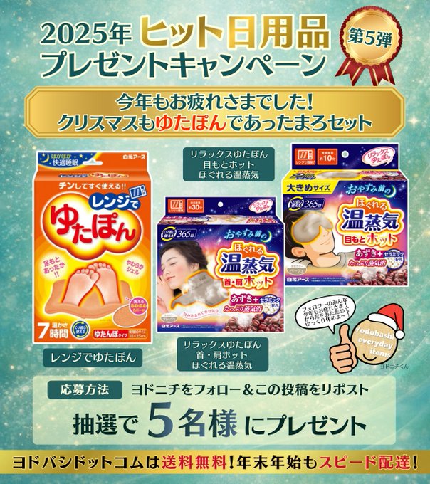 賞品:白元アース「ゆたぽん3点セット」(5名様)