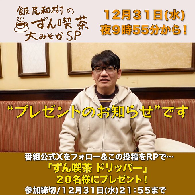 飯尾和樹のずん喫茶‐フォロー&リポストキャンペーン