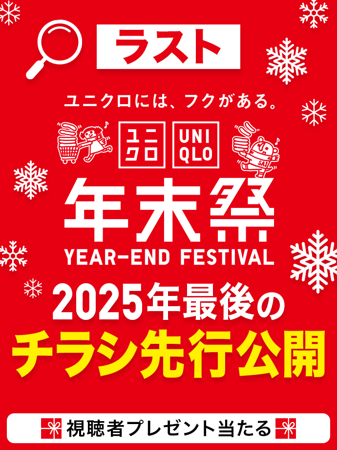 真冬のあったかユニクログッズ3点セットを50名様にプレゼント 2025.12.29 2025.12.28UNIQLO LIVE STATION‐視聴者プレゼント 賞品:真冬のあったかユニクログッズ3点セット(50名様) 締切:2026年1月3日(土)ご応募には会員登録/ログインが必要です。※詳細はキャンペーンページにてご確認ください。応募はこちらから
