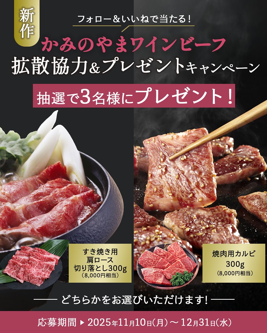 賞品:すき焼き用肩ロース、焼肉用カルビ(3名様)