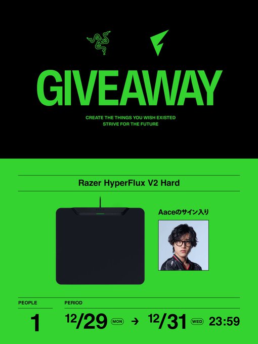 賞品:Aace直筆サイン入り Razer HyperFlux V2 Hard Edition(1名様)